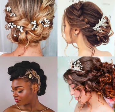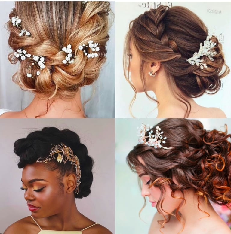 Coiffures avec accessoires : Les peignes, les diadèmes ou les fleurs fraîches ajoutent une touche spéciale à la coiffure.